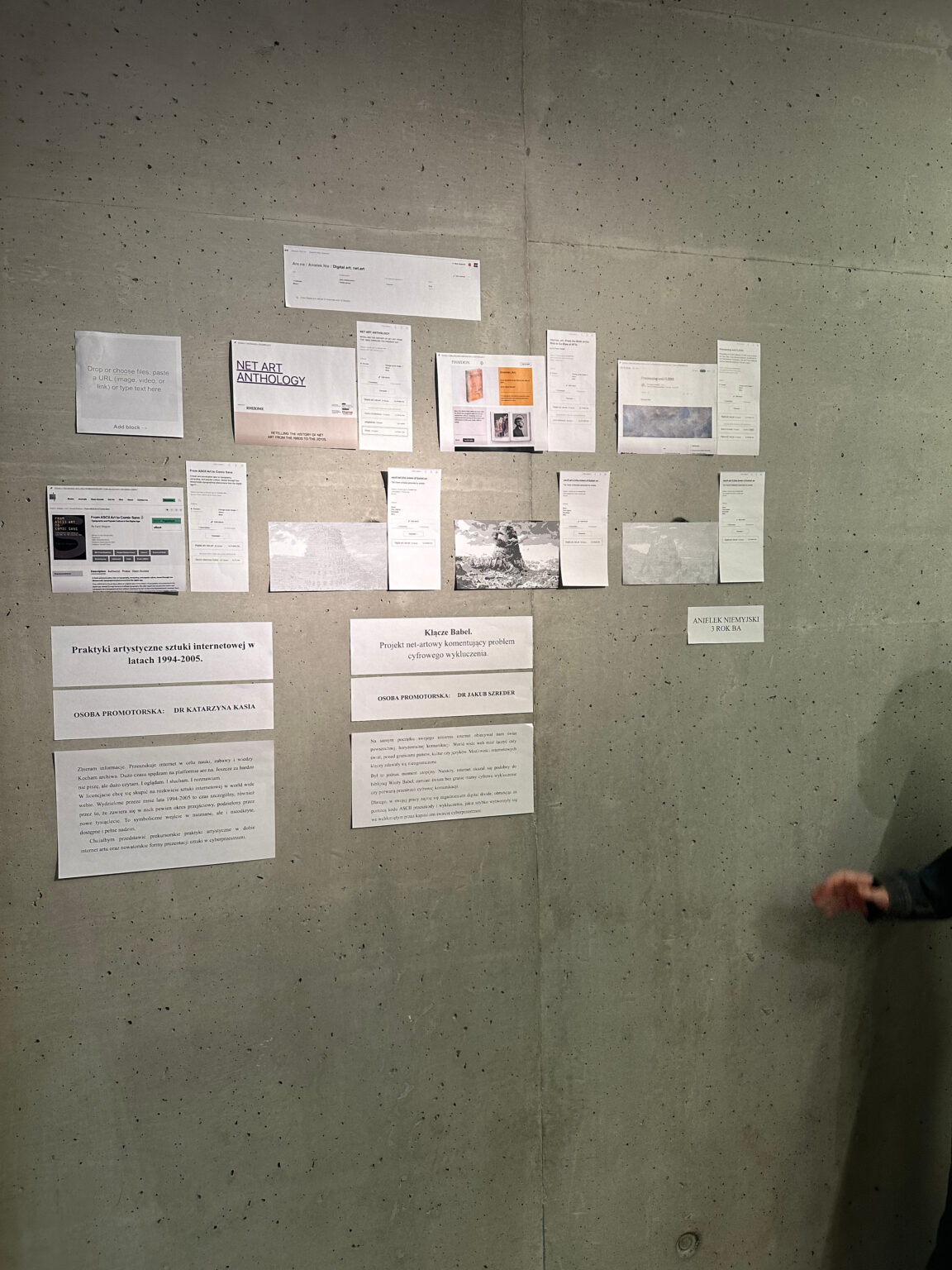 Osoby studenckie z III roku studiów I stopnia i II roku studiów II stopnia prezentowały tematy swoich teoretycznych i praktycznych prac dyplomowych przed Komisją, składającą się ze wszystkich nauczycielek i nauczycieli akademickich pełniących w roku akademickim 2023/2024 funkcję promotorek i promotorów prac na kierunku Badania artystyczne.